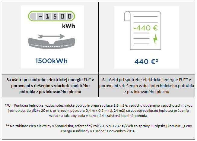(1000 m2 systému CLIMAVER® 360 zodpovedá 700 m vzduchotechnického potrubia s vnútorným prierezom 400 x 200 mm)